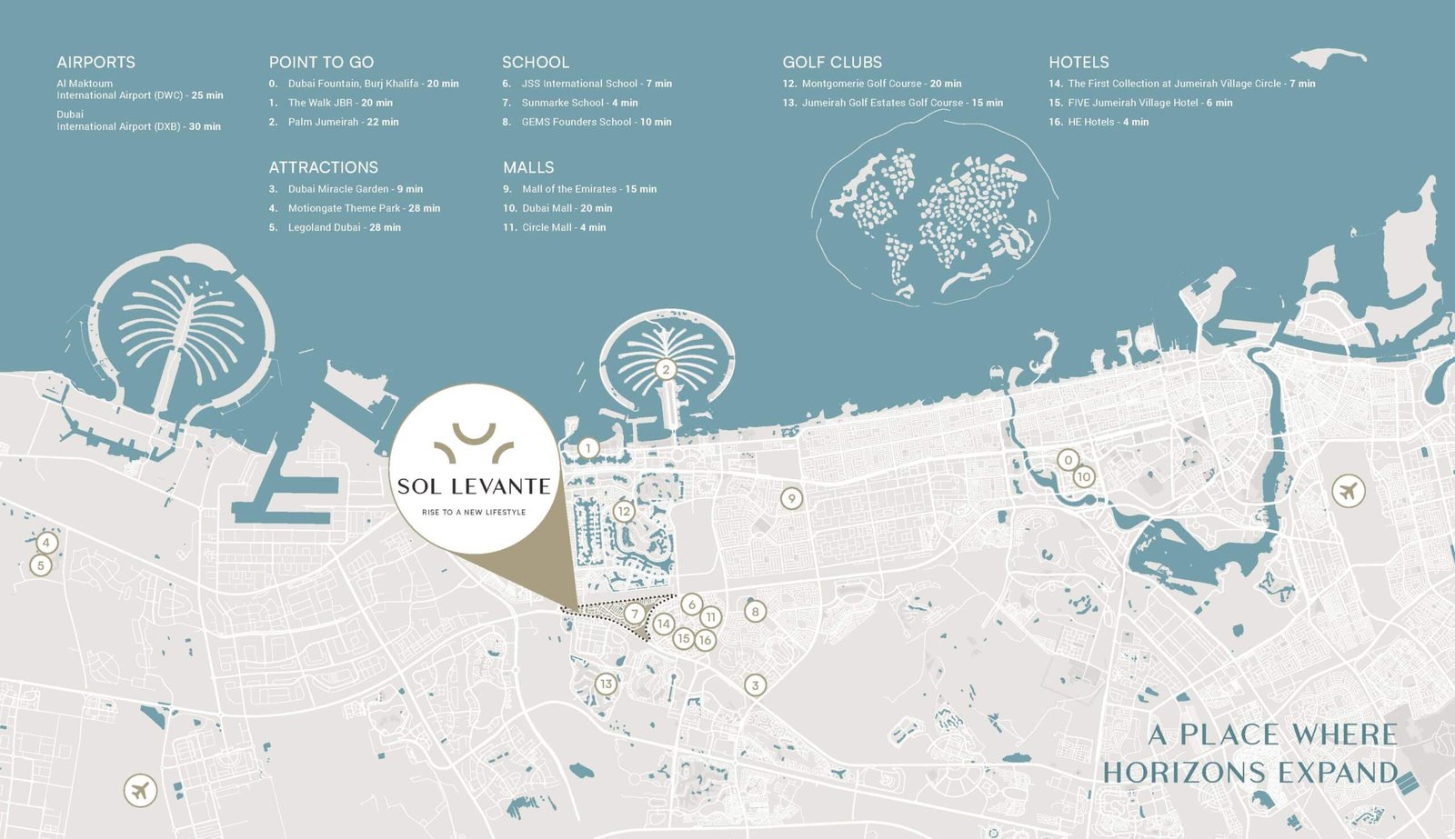 With its strategic location in JUMEIRAH VILLAGE TRIANGLE, SOL LEVANTE offers wellness & luxury living in Dubai with excellent connectivity to major highways such as the Sheikh Mohammad Bin Zayed Road and Al Khail Road, ensuring effortless travel to key destinations. Homeowners and investors will find this a very appealing investment due to its ideal location.